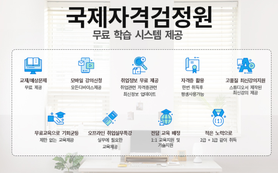 100% 무료수강으로 누구나 제한없이 자격취득을 할 수 있습니다. 지금 아래에서 무료회원 가입을 하고