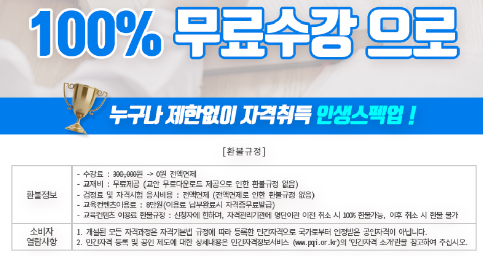 100% 무료수강으로 누구나 제한없이 자격취득을 할 수 있습니다. 지금 아래에서 무료회원 가입을 하고