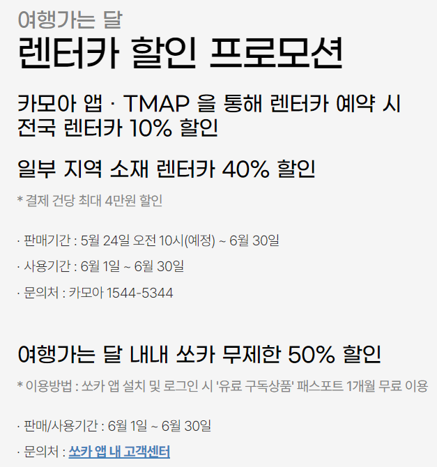 판매기간 - 렌터카 : 5월 24일 오전 10시(예정) ~ 6월 30일