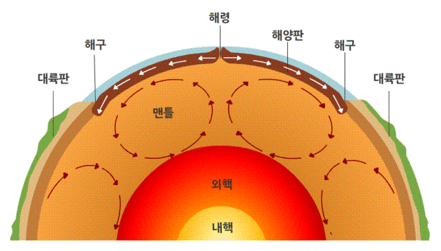 먼저 지구대륙의 성장은 맨틀대류에서 시작합니다. 약 19억 년 전 이전에는 맨틀 대류가 상부 맨틀과 하부 맨틀로 나뉘어 이루어졌다고 지구과학자들은 추정하고 있습니다. 초기 지구의 대륙은 바다 가운데 섬들이 점점이 나열된 호상열도의 형태였습니다. 해양판은 약 1,000개 정도의 작은 판으로 나뉘어 초기대륙 아래로 빠른 속도로 섭입되었습니다.
